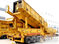 轮式移动制砂机(又叫制砂轮胎移动破碎站),用于破碎粒度在5公分以下的物料,因为是专业制砂设备,如果物料大于五公分的话就要用两台移动设备,先经过鄂式移动破碎机粗碎之后才能制砂。